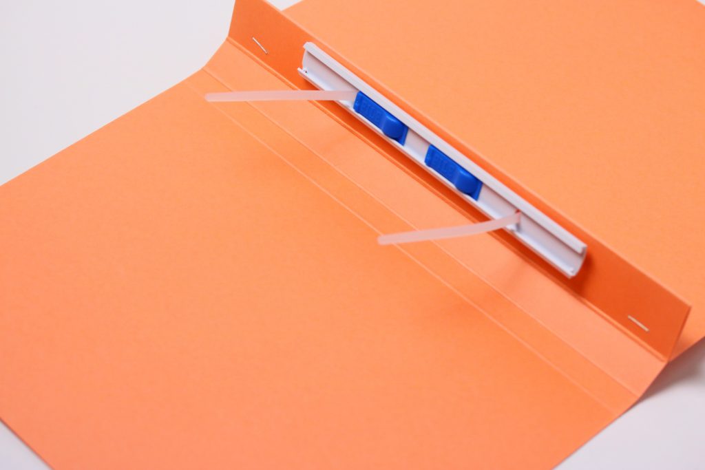 A5サイズの書類を綴じる仕様のフラットファイルを800部作成致しました。フラットファイルでは珍しく表面にグロスPP加工を施し、ツヤと表面保護性を施しました。ファスナーを取り付け納品致しました。